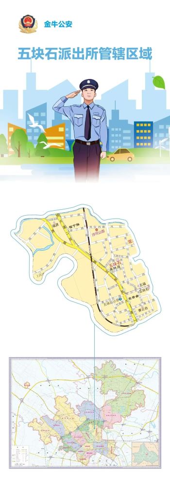成都金牛区五块石派出所管辖区域属于五块石街道办事处,含五福社区、赛云台社区、福源社区。办公地址:赛云台东一路16号报警电话:028-83116248