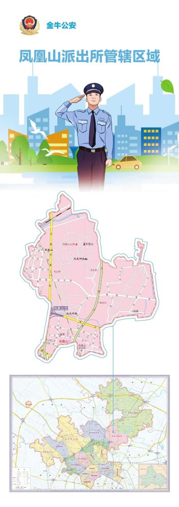 成都金牛区凤凰山派出所管辖区域属于凤凰山街道办事处,含凤翔社区、金韦社区。办公地址:双耀一路546—558号报警电话:028-83161218