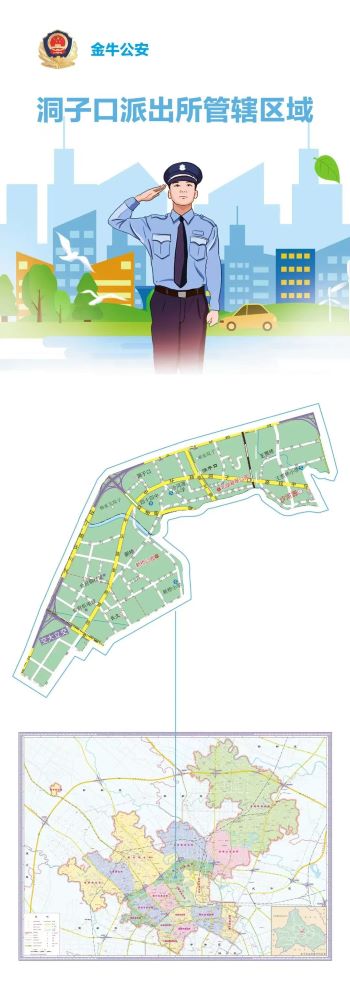 成都市金牛区洞子口派出所管辖区域属于沙河源街道办事处,含长久社区、新桥社区、王贾桥社区、洞子口社区。办公地址:洞子口北街5号附43号报警电话:028-67578110