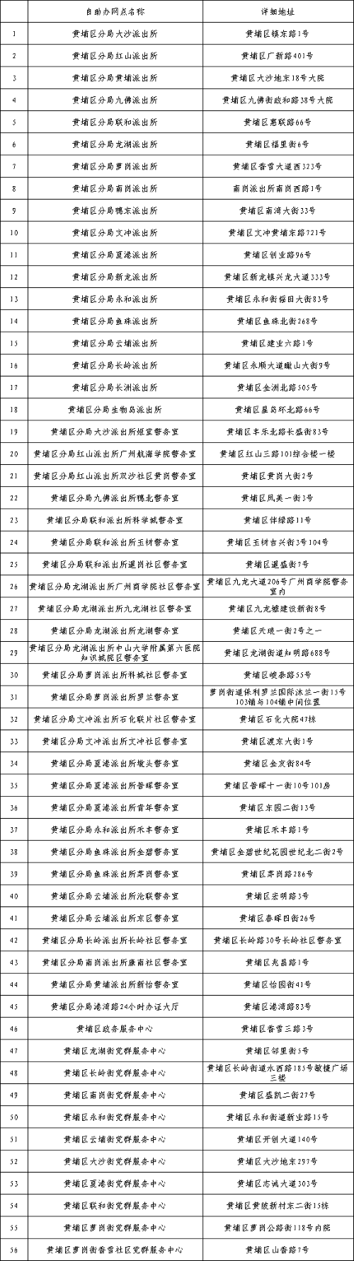 广州市黄埔区市民群众可就近选择以下办证点办理相应业务,广州市黄埔区居民身份证自助办证点一览表如下: