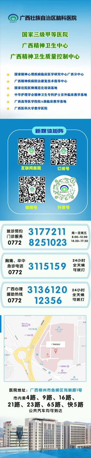 说明:关于广西脑科医院就诊预约门诊服务电话的信息作出特别说明:本信息立足为社会大众提供有价值的参考资料和办事指南等公共信息,部分图文来源于网络或者有关机构公开内容,属于公益性的分享与传播。虽然尽力确保内容的准确性和实效性,但由于各种因素,难免存在疏忽和差错,敬请不吝赐教,欢迎相互交流,共同学习。对信息中陈述、观点判断保持中立,版权属原作者所有,如涉侵权或者差错等问题,请联系网络信息推广平台秋果黄页网客服(187/8199/3958微信同号),一定会及时删除或者修正。谢谢!
