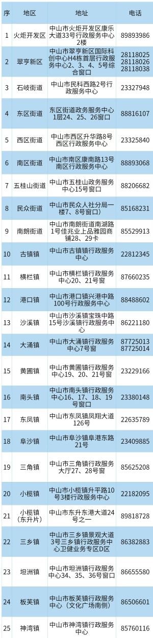 中山市医保热线(各镇和街道医保经办地址电话)信息表如下: