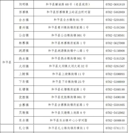 河源市和平县各镇(街道)城乡居民医保业务办理咨询电话和地址: