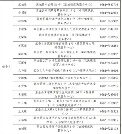 河源市紫金县各镇(街道)城乡居民医保业务办理咨询电话和地址: