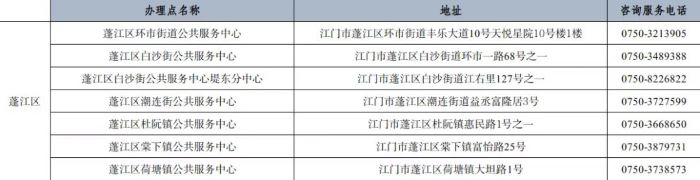 江门市蓬江区户政业务受理点地址和咨询服务电话