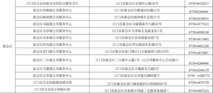 江门市新会区户政业务受理点地址和咨询服务电话