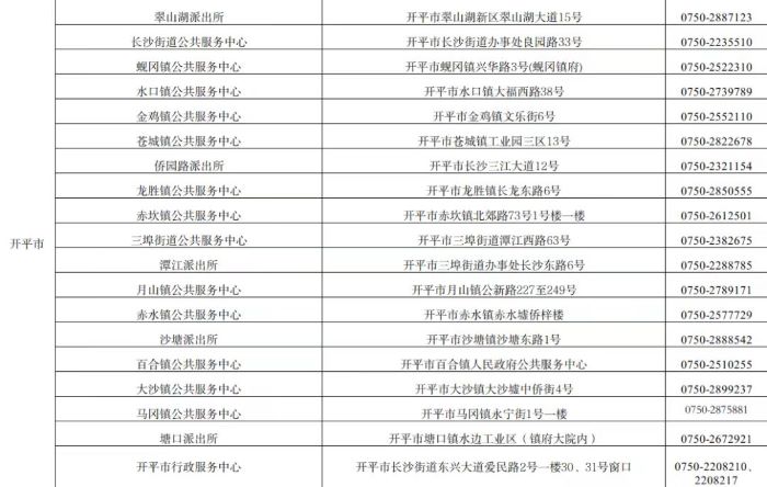 江门开平市户政业务受理点地址和咨询服务电话