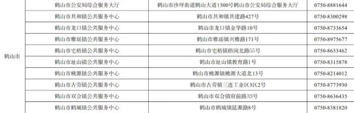 江门鹤山市户政业务受理点地址和咨询服务电话