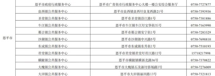 江门恩平市户政业务受理点地址和咨询服务电话