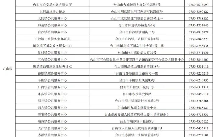 江门台山市户政业务受理点地址和咨询服务电话