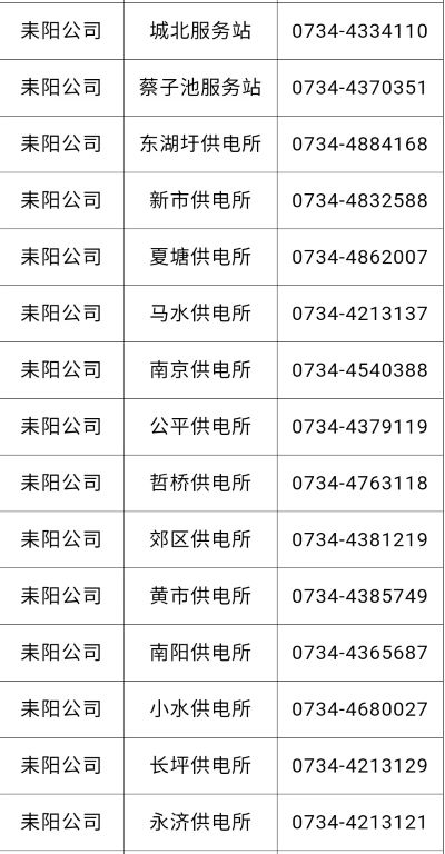 衡阳耒阳市供电公司网格化服务电话(供电所和服务站)信息表如下: