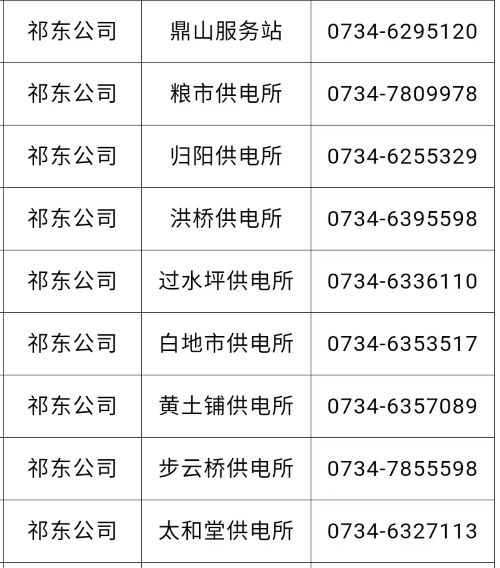 衡阳祁东县供电公司网格化服务电话(供电所和服务站)信息表如下: