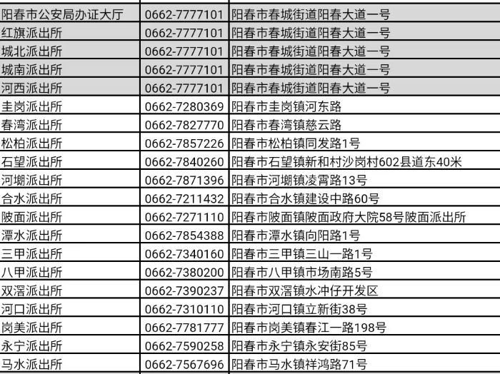 提示:关于阳江阳春市办证大厅和派出所户籍窗口办理身份证业务电话的信息作出特别说明:本信息立足为社会大众提供有价值的参考资料和办事指南等公共信息,部分图文来源于网络或者有关机构公开内容,属于公益性的分享与传播。虽然尽力确保内容的准确性和实效性,但由于各种因素,难免存在疏忽和差错,敬请不吝赐教,欢迎相互交流,共同学习。对信息中陈述、观点判断保持中立,版权属原作者所有,如涉侵权或者差错等问题,请联系网络信息推广平台秋果黄页网客服(187/8199/3958微信同号),一定会及时删除或者修正。谢谢!