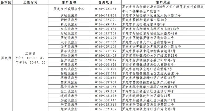 云浮市云城区和云安区各派出所户政业务窗口地址和咨询电话信息表