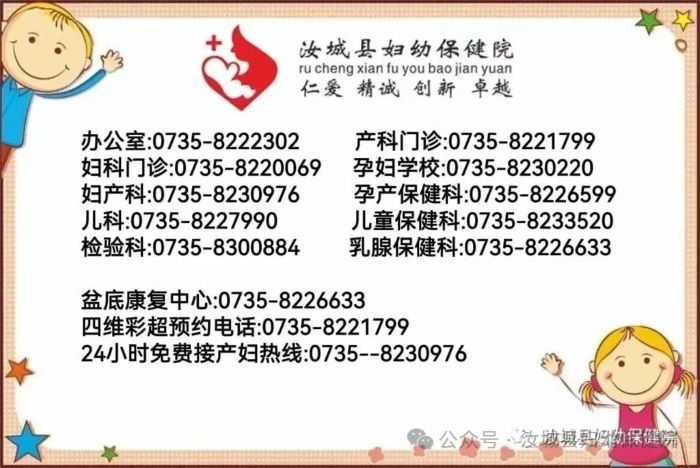 汝城县妇幼保健院孕产保健科咨询电话:0735-8226599,产科门诊咨询电话:0735-8221799