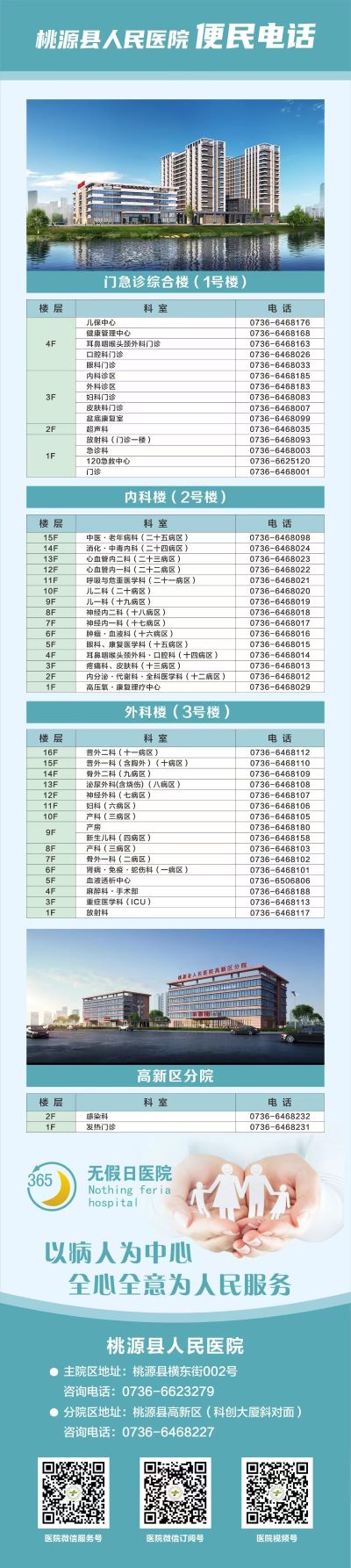说明:关于桃源县人民医院各科室便民服务电话信息仅供参考。