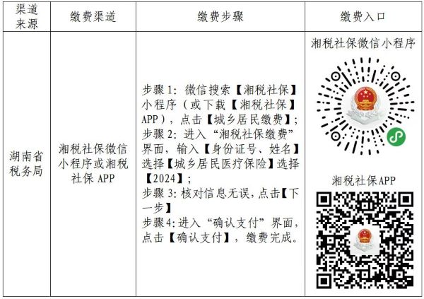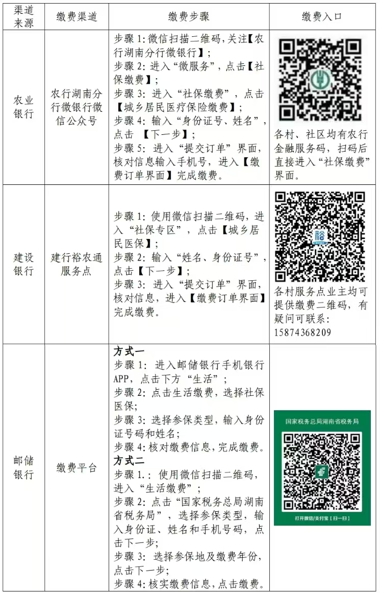 通过“湘税社保”APP、微信小程序、国有商业银行网上银行等渠道缴费;