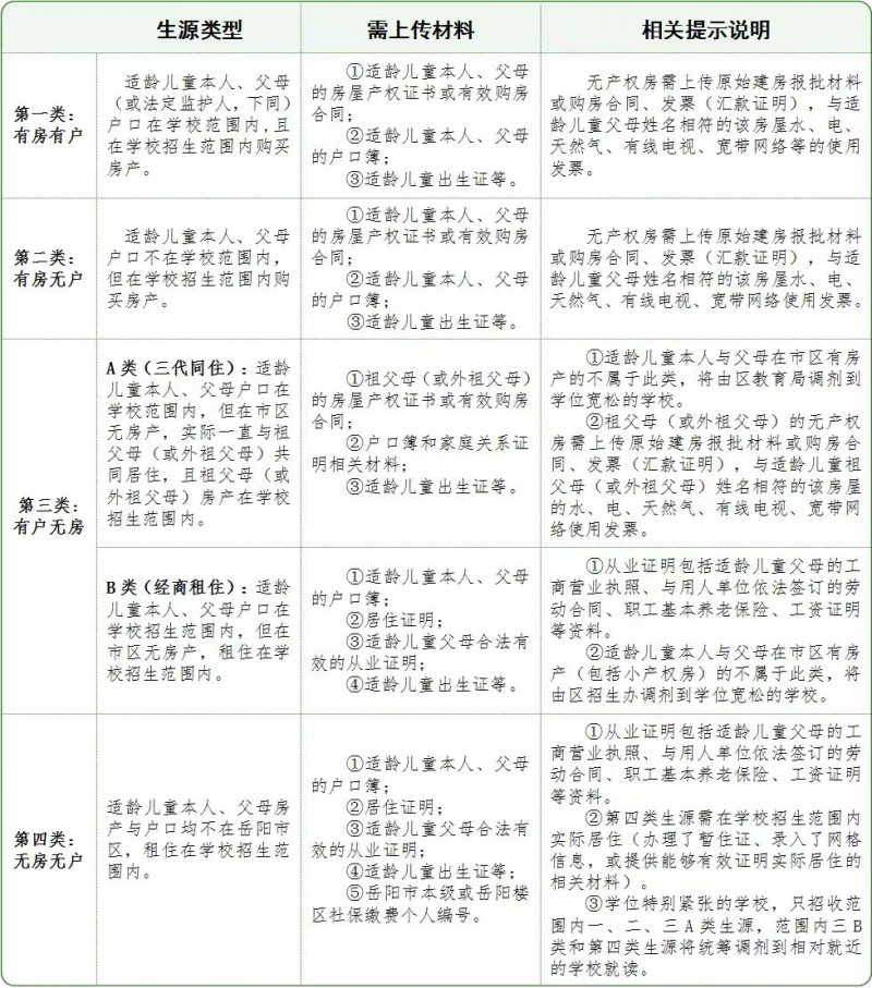B类:适龄儿童本人、父母户口在学校招生范围内,但在市区无房产,租住在学校招生范围内。第四类:无房无户,即房产与户口均不在岳阳市区,租住在学校招生范围内。