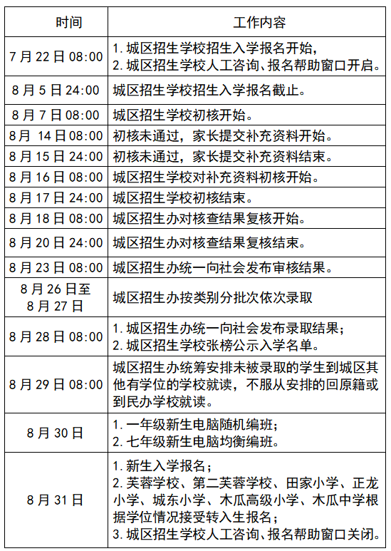(一)审核时间:8月7日至8月13日由城区招生办、城区招生学校逐级分类核查。并统一向社会发布核查结果。