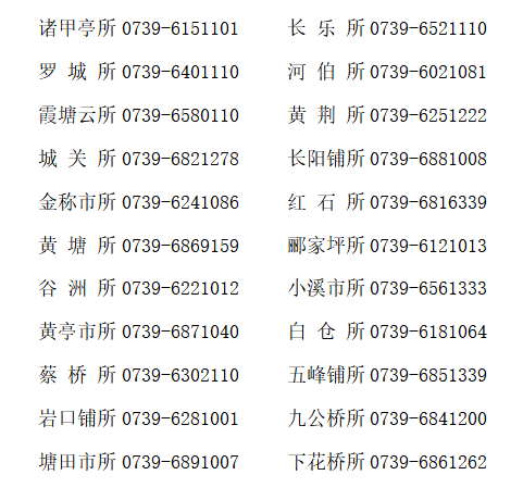 邵阳县辖区各基层派出所对外联系电话信息表如下: