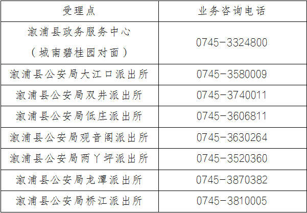 溆浦县政务中心和派出所身份证业务受理点业务咨询电话一览表: