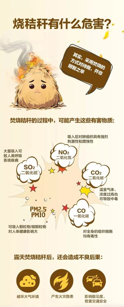 衡阳目前主要秸秆作物有水稻、油菜、玉米和棉花,秸秆的产生量大,露天无序焚烧会产生环境污染、健康危害、生态破坏等问题。