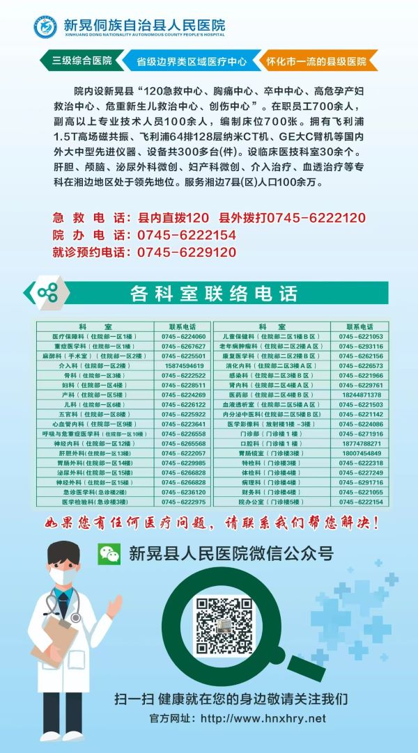 新晃县侗族自治县人民医院各科室联系电话汇总如下: