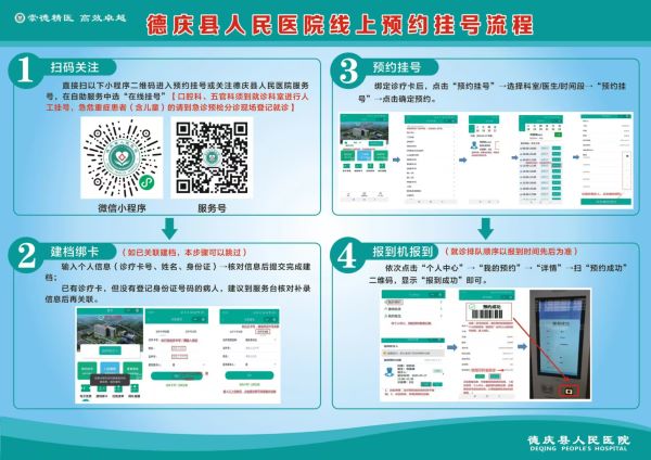 德庆县人民医院各科室服务热线和线上预约挂号流程: