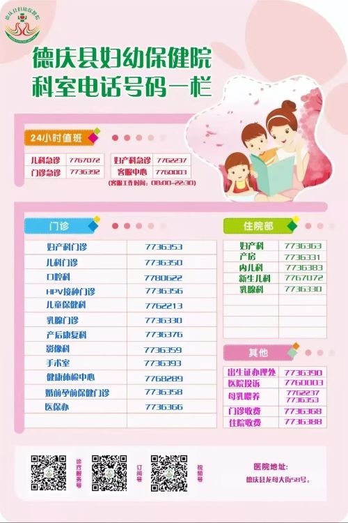 德庆县妇幼保健院各科室电话号码一览表如下: