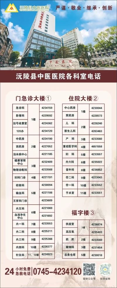 说明:关于沅陵县中医医院各医疗服务科室电话汇总的信息作出特别说明:本信息立足为社会大众提供有价值的参考资料和办事指南等公共信息,部分图文来源于网络或者有关机构公开内容,属于公益性的分享与传播。虽然尽力确保内容的准确性和实效性,但由于各种因素,难免存在疏忽和差错,敬请不吝赐教,欢迎相互交流,共同学习。对信息中陈述、观点判断保持中立,版权属原作者所有,如涉侵权或者差错等问题,请联系网络信息推广平台秋果黄页网客服(187/8199/3958微信同号),一定会及时删除或者修正。谢谢!