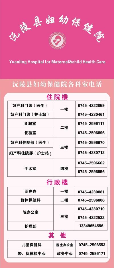 沅陵县妇幼保健院主要对外服务科室电话如下: