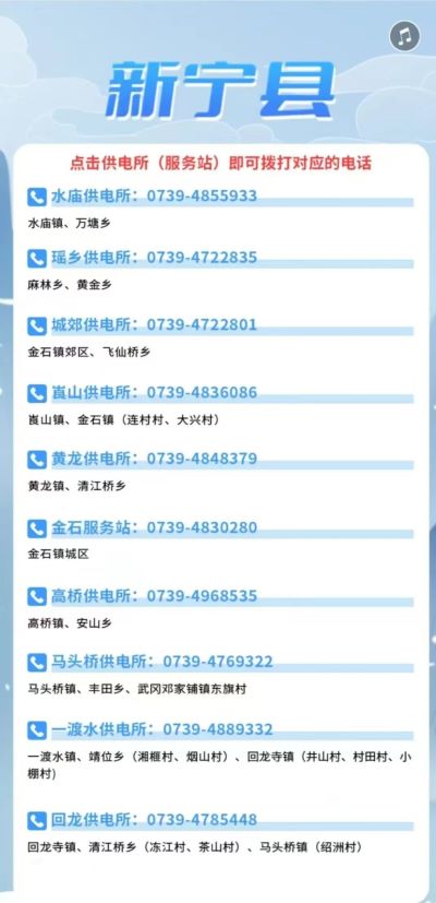 邵阳市新宁县供电公司各供电所电力抢修服务电话
