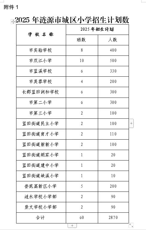 说明:关于2025年涟源市城区学校小学一年级新生入学报名公告的信息仅供参考。