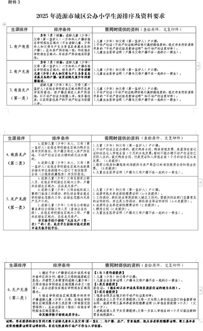 3.2025年涟源市城区公办小学生源排序及资料要求