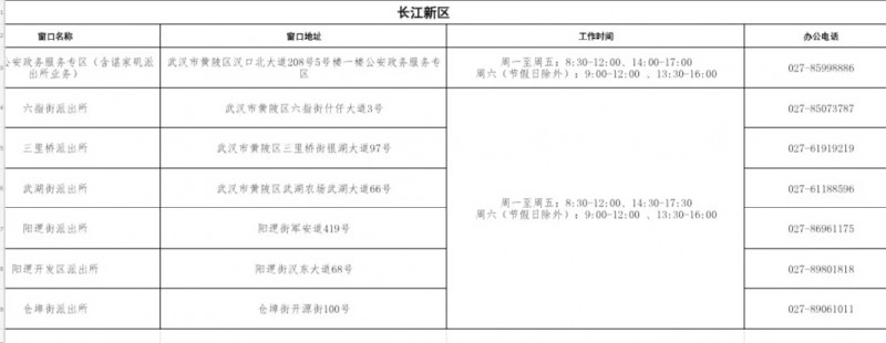 武汉市长江新区政务服务中心和派出所户籍(身份证)业务电话: