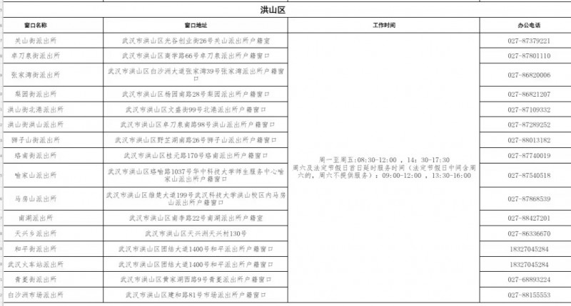 武汉市洪山区各派出所户籍(身份证办证)业务咨询电话: