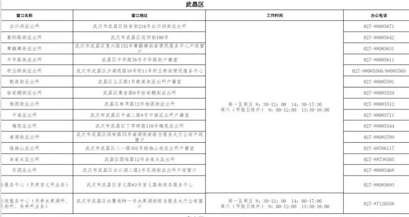 武汉市武昌区各派出所户籍(身份证办证)业务咨询电话: