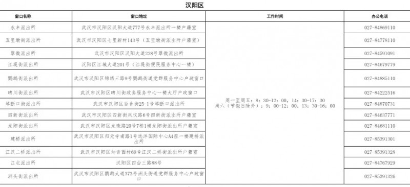 武汉市汉阳区各派出所户籍(办理身份证)业务咨询电话: