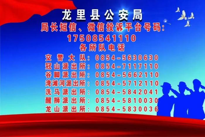 提示:关于龙里县交警大队和各派出所值班电话的信息作出免责声明:关于此信息作出免责声明,此信息图文仅供参考,小编不承担任何法律责任。此信息来源于有关机构的公开内容,在此经过整理并转载,唯一的目的是通过互联网传播便民惠民信息。由于时间等原因,难免使信息发生变更,此信息如有侵权,或者差错,请联系删除,直接联系便民信息平台秋果黄页网客服电话(187-8199-3958微信同号),一定会及时删除和修正。