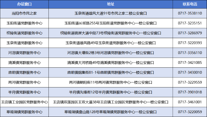 当阳市辖区群众办理居民身份证业务窗口地址和联系电话: