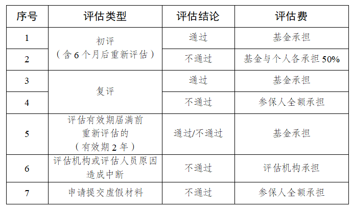 (四)评估费用失能等级评估费用实行共担制度,具体规定如下: