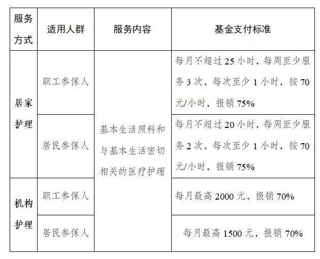 (一)居家护理服务:由定点长护服务机构派专业人员上门提供生活照料及医疗护理服务,适合希望在家庭环境中接受照护的失能人员。(二)机构护理服务:参保人员可入住定点长护服务机构,接受全日生活照料和医疗护理服务,适合对专业护理环境和全面护理服务有需求的失能人员。