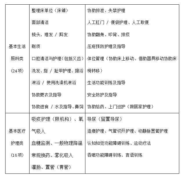 长护险基金支付的服务项目范围