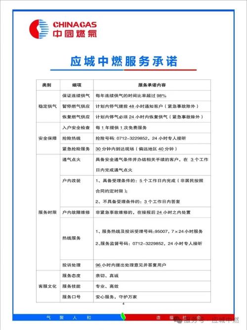 应城市中燃天然气公司服务承诺
