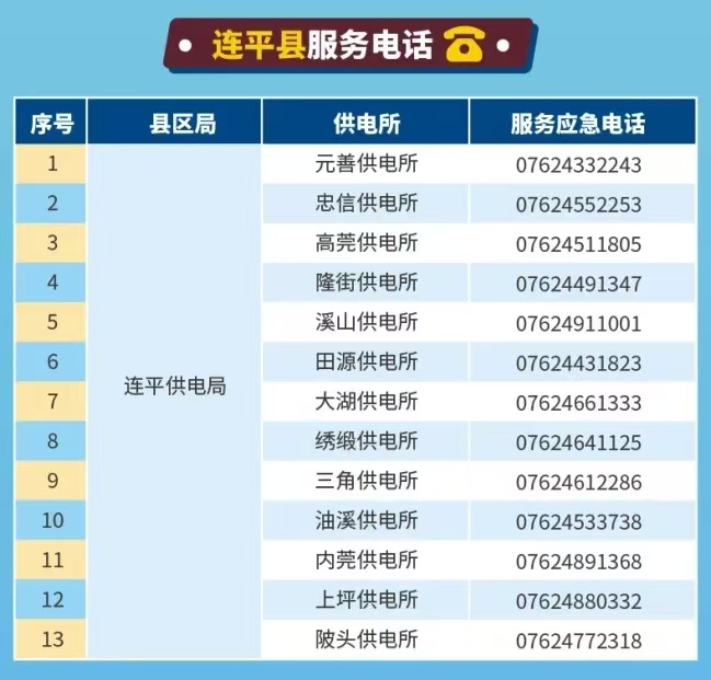 说明:关于连平县供电公司各属地供电所应急服务电话的信息仅供参考。