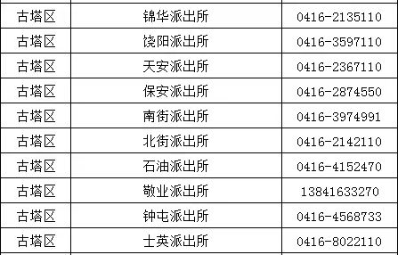 锦州市古塔区各辖区派出所户籍及身份证办理窗口电话