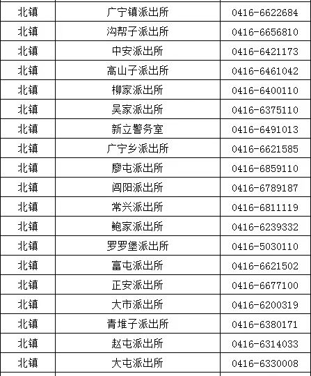 锦州北镇市各辖区派出所户籍及身份证办理窗口电话