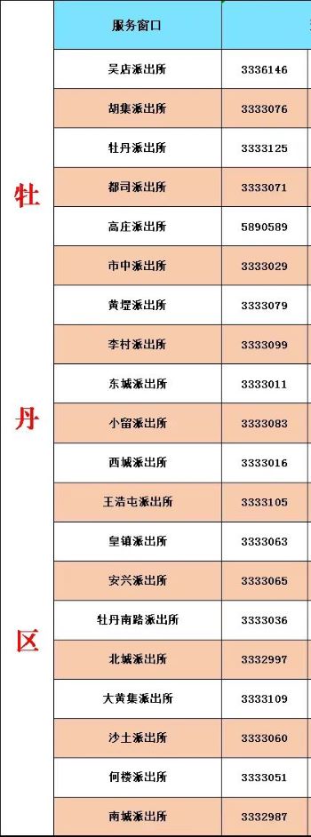 七、菏泽市牡丹区各派出所户籍窗口居民身份证办理咨询电话如下: