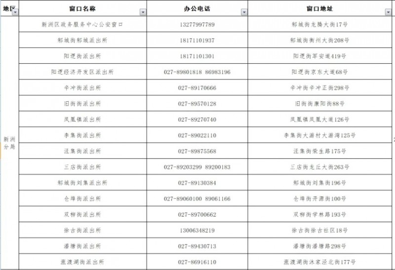武汉市新洲区各派出所户政窗口地址和办公电话信息汇总如下: