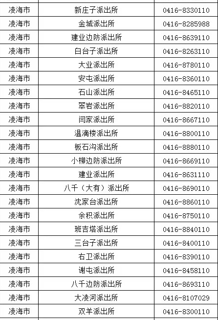 锦州凌海市辖区各派出所户政业务联系电话信息汇总如下: